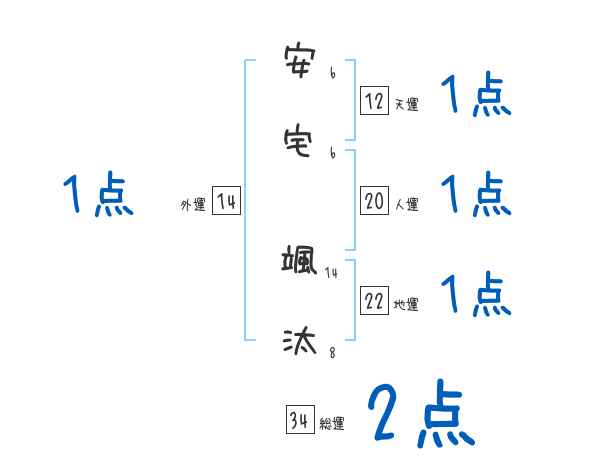 安宅颯汰さんの画数の鑑定結果