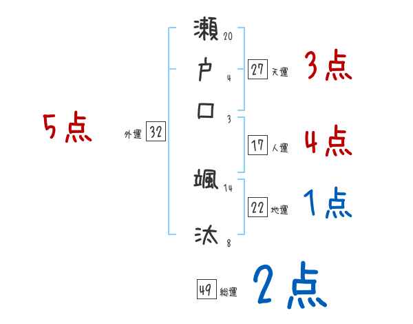 瀬戸口颯汰さんの画数の鑑定結果