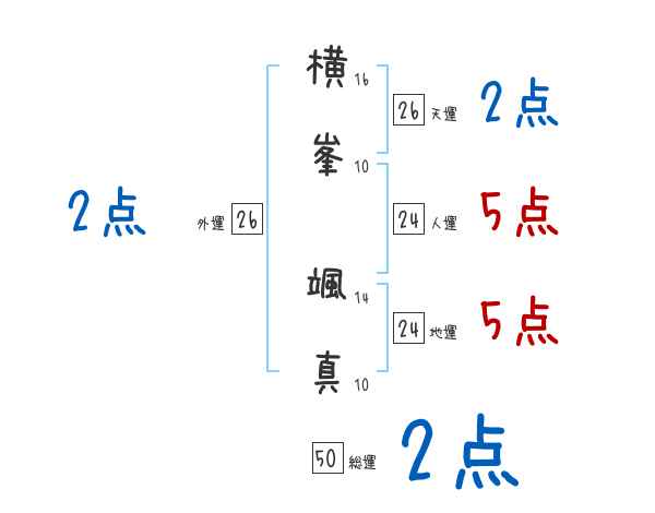 横峯颯真さんの画数の鑑定結果