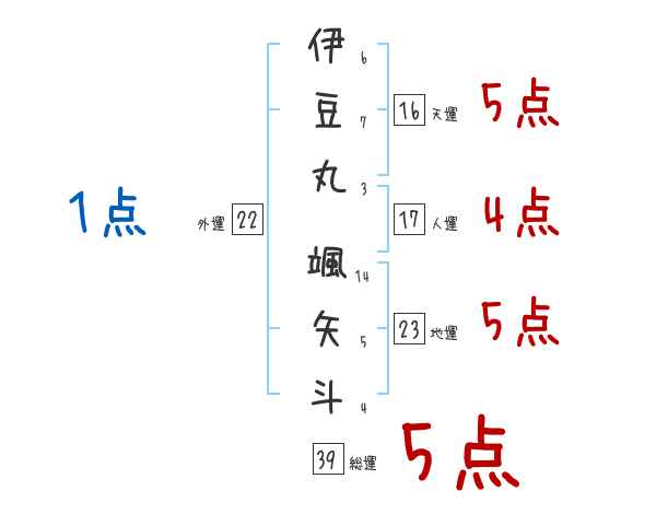 伊豆丸颯矢斗さんの画数の鑑定結果