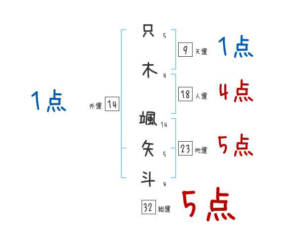 外運![]() | 只木颯矢斗さんの外運は14画の1つ星!人に対して優しいがストレスを溜め込みがち。人間関係のトラブルを避けるよう気をつけましょう。 生活面を象徴する運勢です。外部から受ける影響力を表し、結婚運、家庭運や職場、環境への順応性を表します。 |