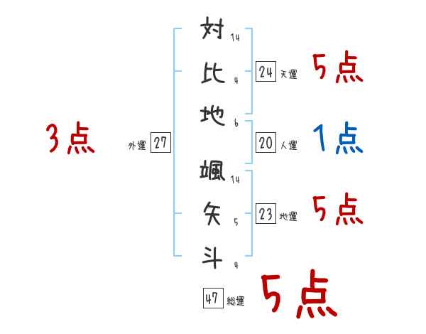 対比地颯矢斗さんの画数の鑑定結果