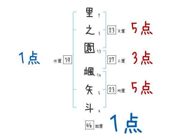 里之園颯矢斗さんの画数の鑑定結果