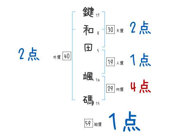 天運![]() | 鍵和田颯碼さんの天運は30画の2つ星!浮き沈みの激しさに注意しましょう。 家系が持つ宿命的な運勢を表します。祖先から受け継いだ苗字ですので自分の力が及びません。家柄を象徴します。 |