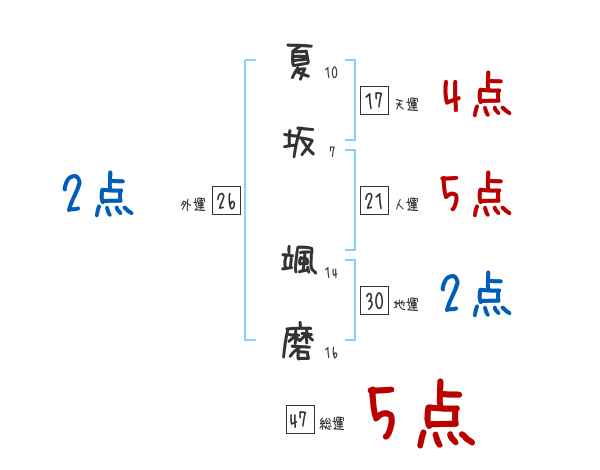 夏坂颯磨さんの画数の鑑定結果