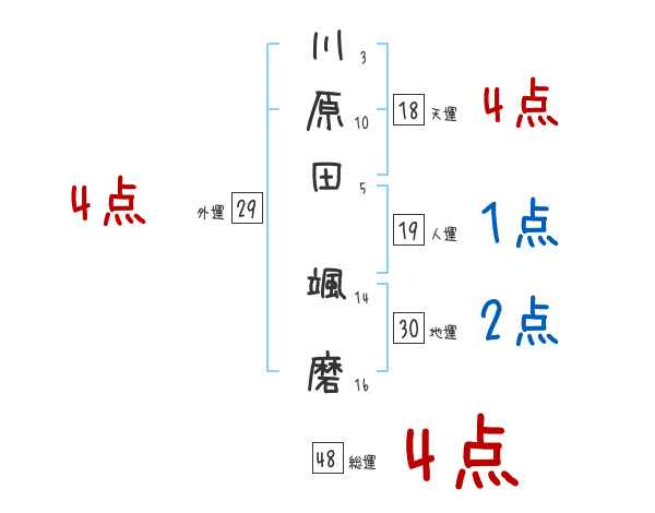川原田颯磨さんの画数の鑑定結果