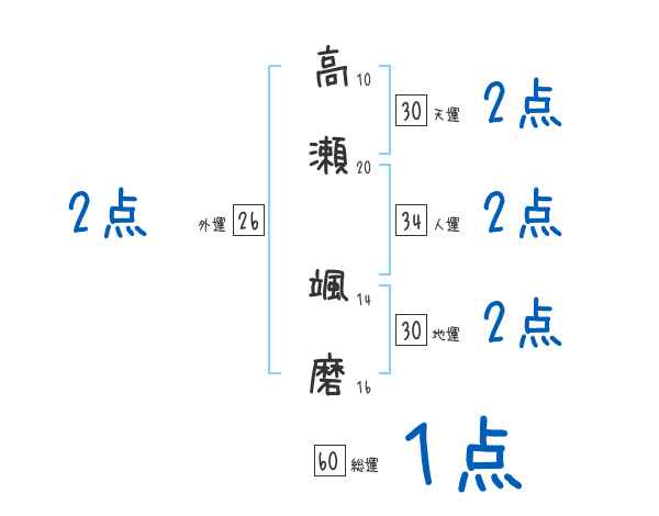 高瀬颯磨さんの画数の鑑定結果