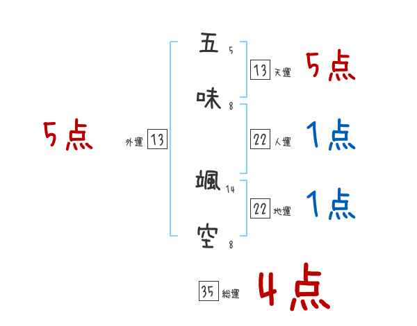 五味颯空さんの画数の鑑定結果