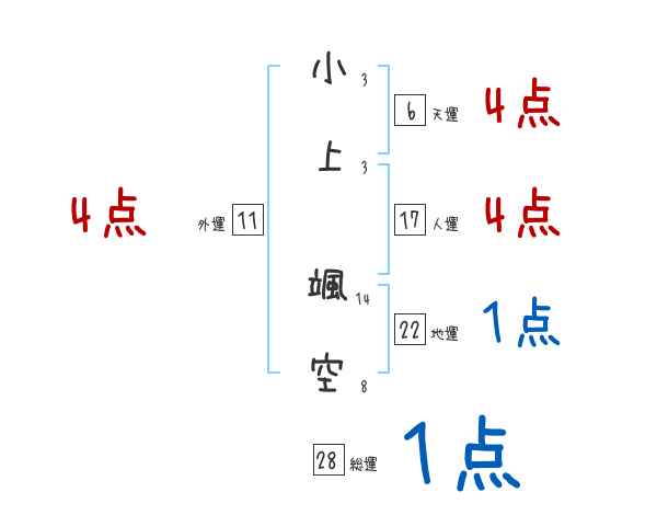 小上颯空さんの画数の鑑定結果