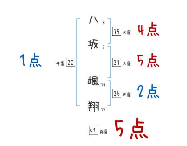 八坂颯翔さんの画数の鑑定結果