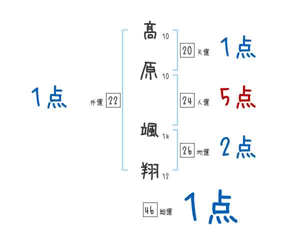 髙原颯翔さんの画数の鑑定結果