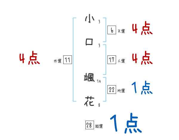 小口颯花さんの画数の鑑定結果