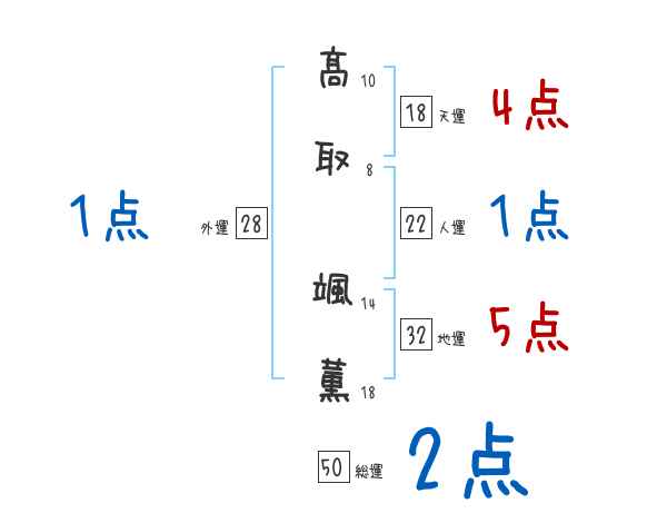 髙取颯薫さんの画数の鑑定結果