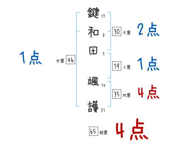 鍵和田颯護さんの画数の鑑定結果