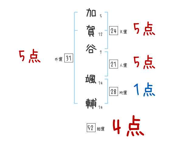 加賀谷颯輔さんの画数の鑑定結果