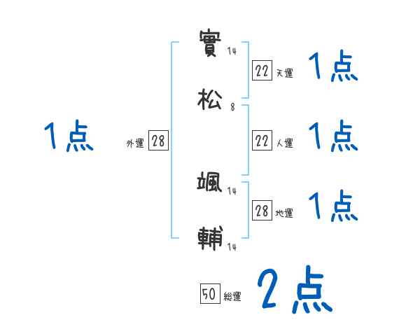 實松颯輔さんの画数の鑑定結果