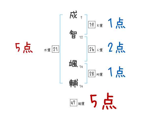 成智颯輔さんの画数の鑑定結果