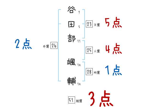 谷田部颯輔さんの画数の鑑定結果