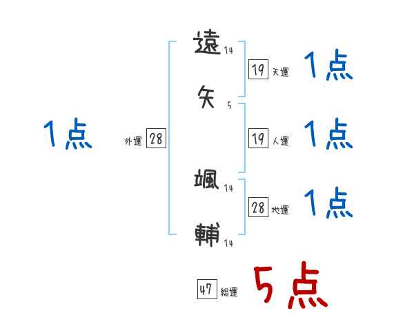 遠矢颯輔さんの画数の鑑定結果