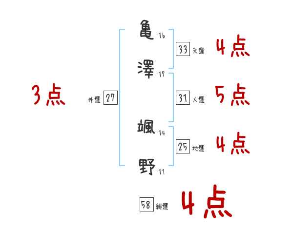 亀澤颯野さんの画数の鑑定結果
