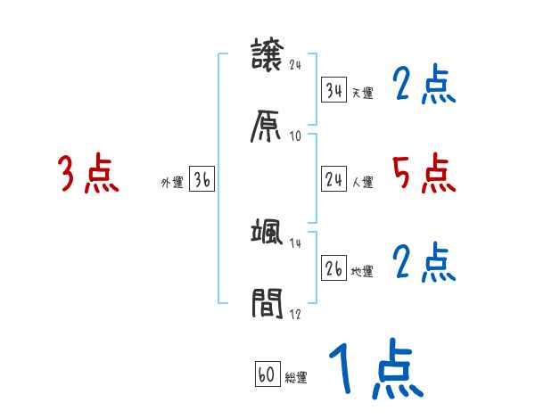 譲原颯間さんの画数の鑑定結果