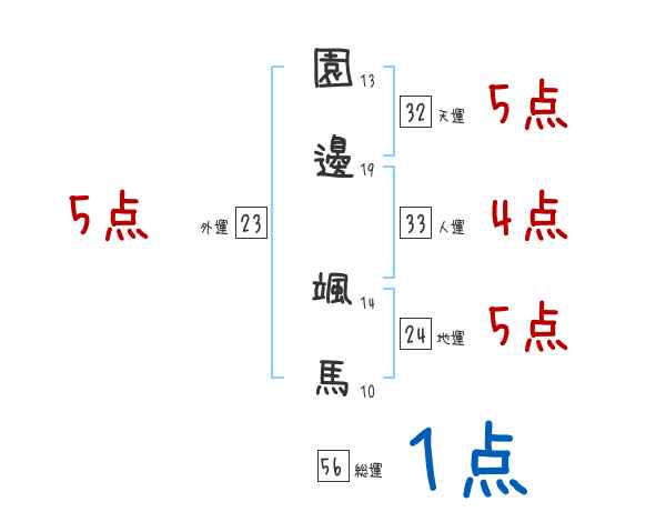 天運![]() | 園邊颯馬さんの天運は32画の5つ星!柔軟性があり成功する。チャンスが多く金運が良い。 家系が持つ宿命的な運勢を表します。祖先から受け継いだ苗字ですので自分の力が及びません。家柄を象徴します。 |