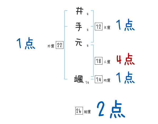 外運![]() | 井手元颯さんの外運は22画の1つ星!努力することが苦手ないっぽう手先が器用。芸術性にも優れる。 生活面を象徴する運勢です。外部から受ける影響力を表し、結婚運、家庭運や職場、環境への順応性を表します。 |