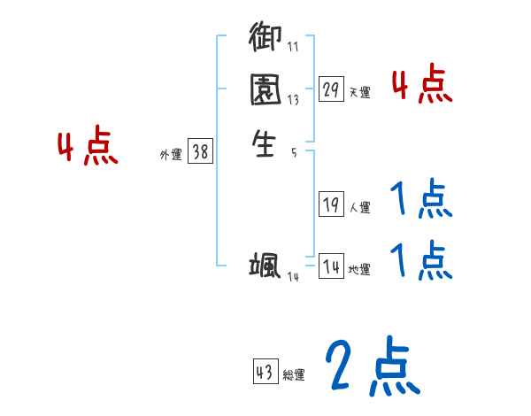 御園生颯さんの画数の鑑定結果