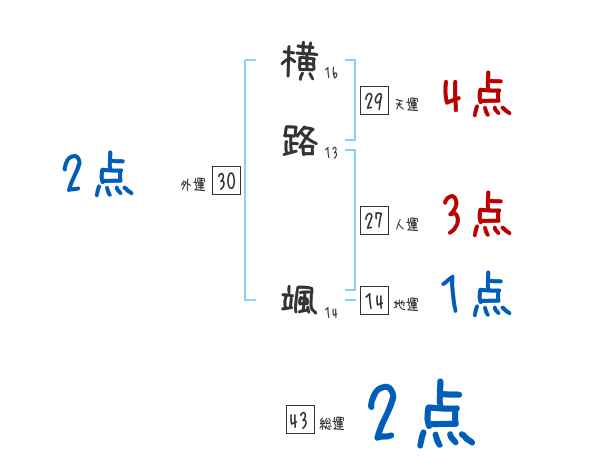 外運![]() | 横路颯さんの外運は30画の2つ星!浮き沈みの激しさに注意しましょう。 生活面を象徴する運勢です。外部から受ける影響力を表し、結婚運、家庭運や職場、環境への順応性を表します。 |