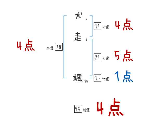 犬走颯さんの画数の鑑定結果