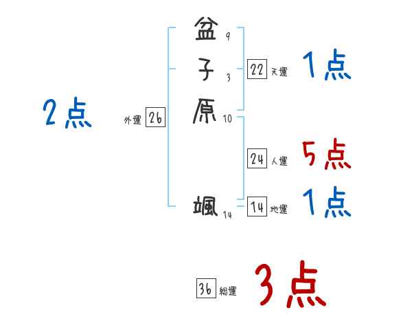 総運![]() | 盆子原颯さんの総運は36画の3つ星!先見性が豊かです。多少神経質で苦労することも。 あなたの人生を表す1番重要な運勢です。生涯を通じて影響する総合運となり、主に50歳以降の晩年期に影響を及ぼします。 |