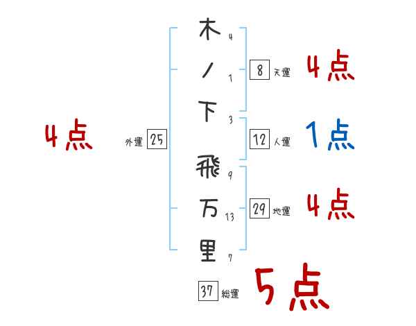 木ノ下飛万里さんの画数の鑑定結果