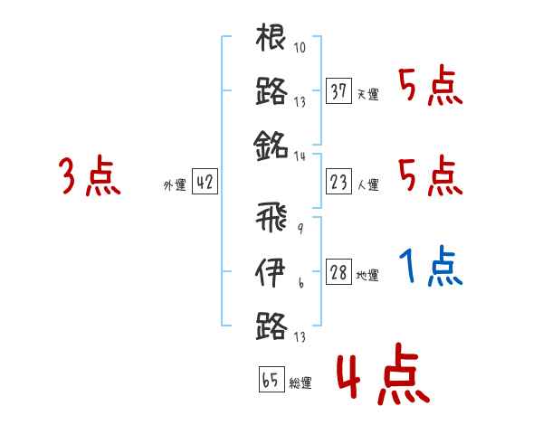 根路銘飛伊路さんの画数の鑑定結果
