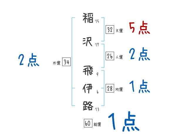 稲沢飛伊路さんの画数の鑑定結果