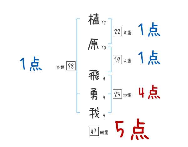 植原飛勇我さんの画数の鑑定結果