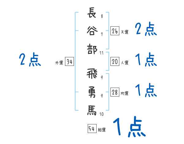 天運![]() | 長谷部飛勇馬さんの天運は26画の2つ星!波瀾万丈かも。信頼できる人を大事にしましょう。 家系が持つ宿命的な運勢を表します。祖先から受け継いだ苗字ですので自分の力が及びません。家柄を象徴します。 |