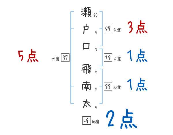 瀬戸口飛南太さんの画数の鑑定結果