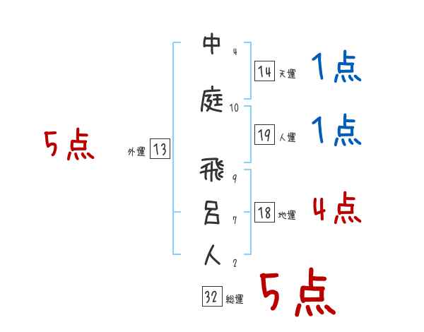 中庭飛呂人さんの画数の鑑定結果