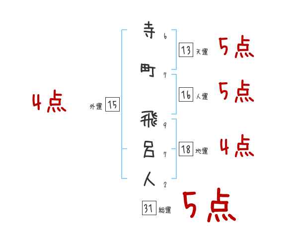 寺町飛呂人さんの画数の鑑定結果