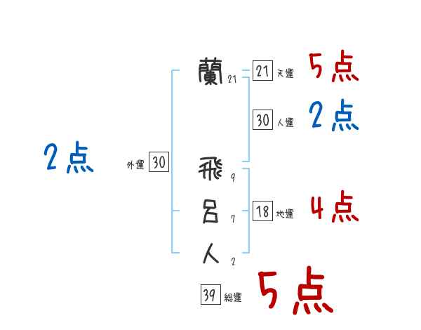 蘭飛呂人さんの画数の鑑定結果