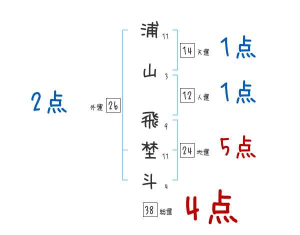 外運![]() | 浦山飛埜斗さんの外運は26画の2つ星!波瀾万丈かも。信頼できる人を大事にしましょう。 生活面を象徴する運勢です。外部から受ける影響力を表し、結婚運、家庭運や職場、環境への順応性を表します。 |