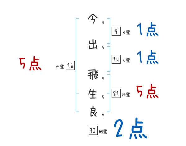 今出飛生良さんの画数の鑑定結果