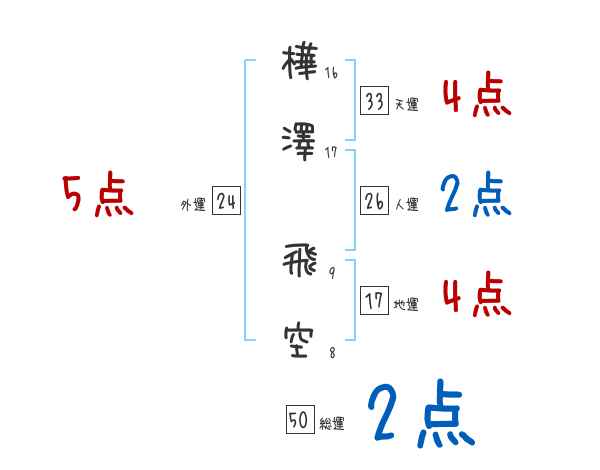 樺澤飛空さんの画数の鑑定結果