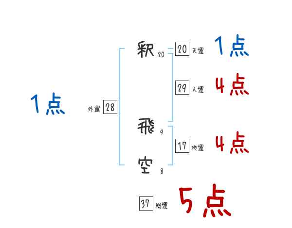 釈飛空さんの画数の鑑定結果