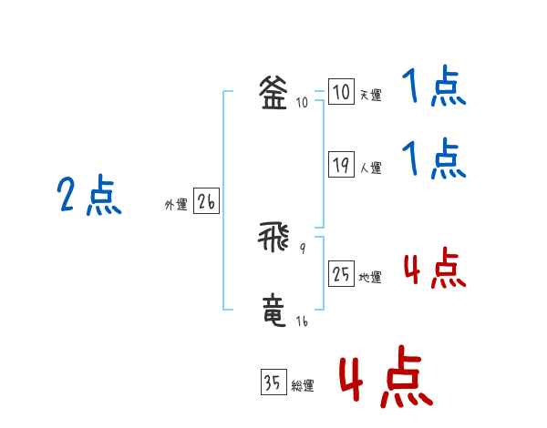 人運![]() | 釜飛竜さんの人運は19画の1つ星!優れた才能を持ちますが、協調性が足りないことも。周りの人と協力する事を意識しましょう。 性格や才能などを表す2番目に重要な運勢です。人間関係や協調性、社会的な成功に影響します。主に20歳から50歳ぐらいまでの中年期の運勢を表します。 |