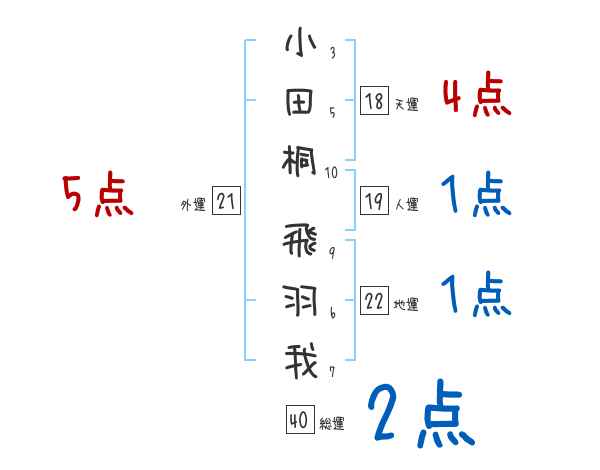 外運![]() | 小田桐飛羽我さんの外運は21画の5つ星!統率力がある。独立し成功する。名誉を手に入れる。 生活面を象徴する運勢です。外部から受ける影響力を表し、結婚運、家庭運や職場、環境への順応性を表します。 |
