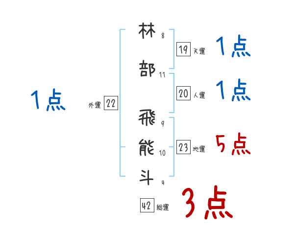 総運![]() | 林部飛能斗さんの総運は42画の3つ星!病気に注意。多芸であるが消極的でおとなしい。 あなたの人生を表す1番重要な運勢です。生涯を通じて影響する総合運となり、主に50歳以降の晩年期に影響を及ぼします。 |