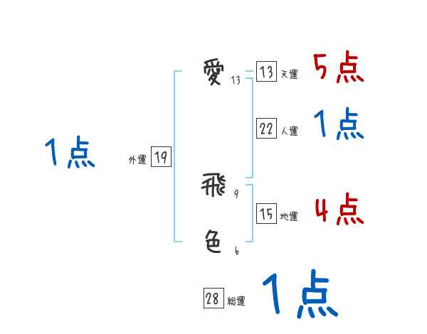 愛飛色さんの画数の鑑定結果