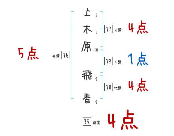 上木原飛香さんの画数の鑑定結果