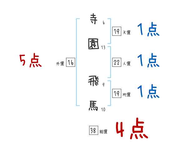 寺園飛馬さんの画数の鑑定結果